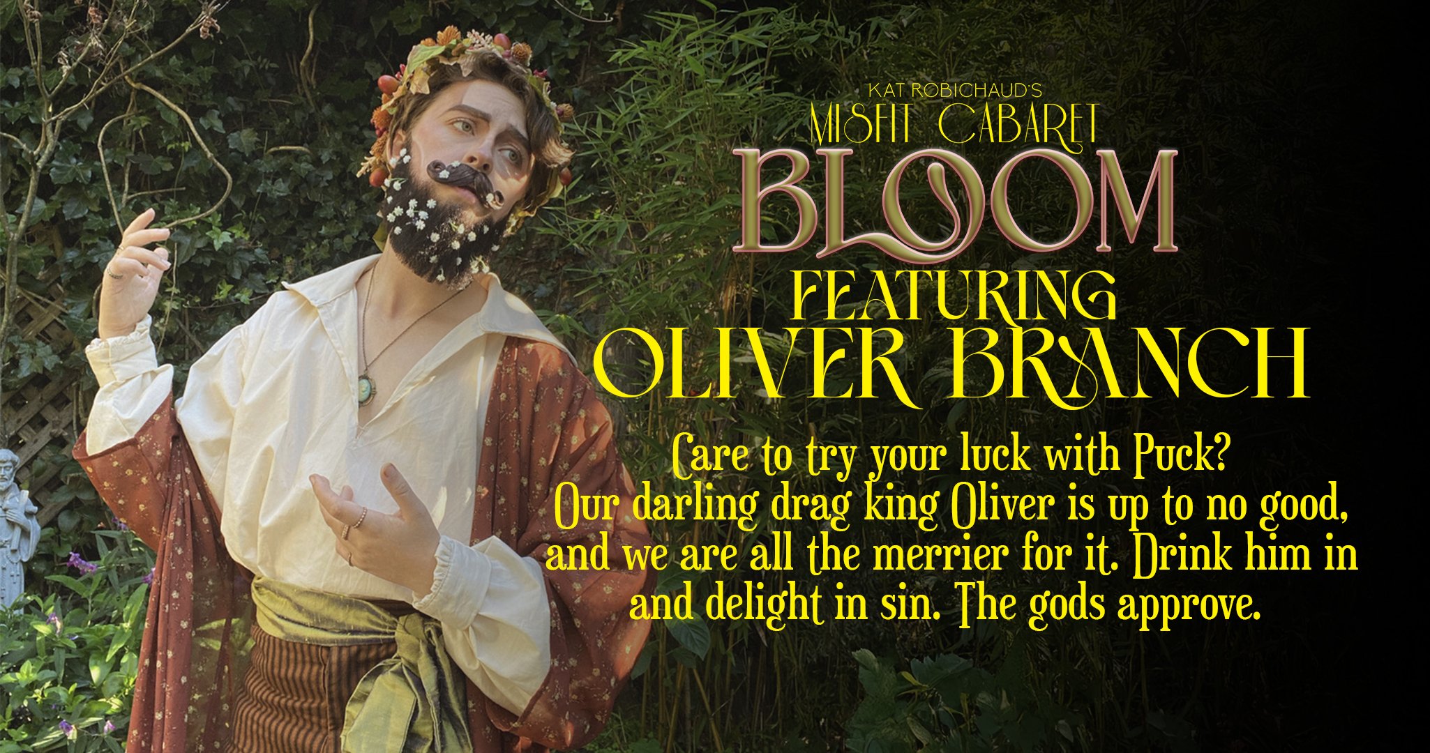 We invite you to participate in our bacchanal, dressed as your favorite flower or woodland creature. So join us in our revelry and prepare to laugh, gasp, and cheer as Misfit Cabaret presents Bloom.